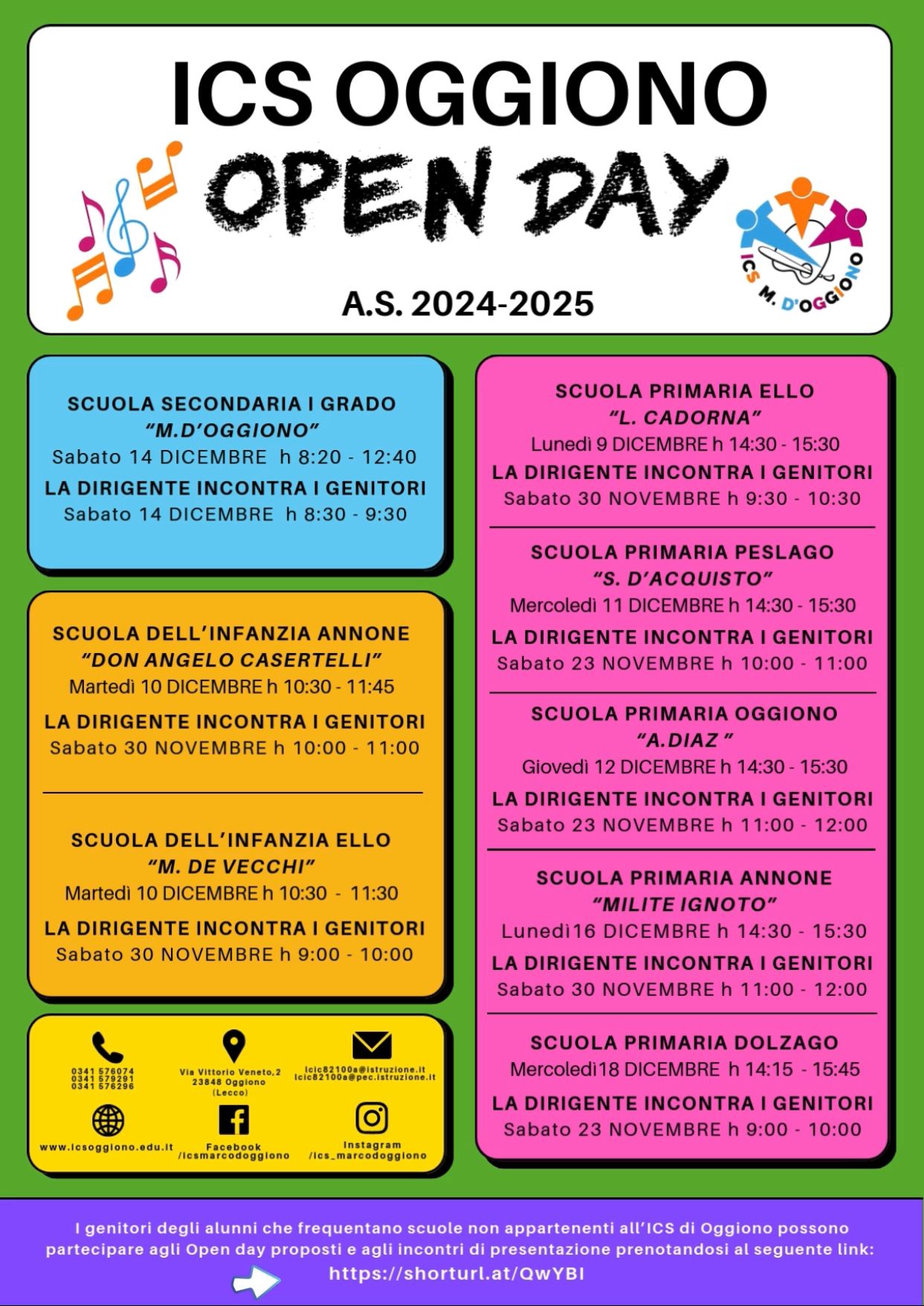 I genitori degli alunni che frequentano scuole non appartenenti all'ICS di Oggiono possono partecipare agli open day e agli incontri di presentazione prenotandosi al seguente link: https://shorturl.at/QwYBI