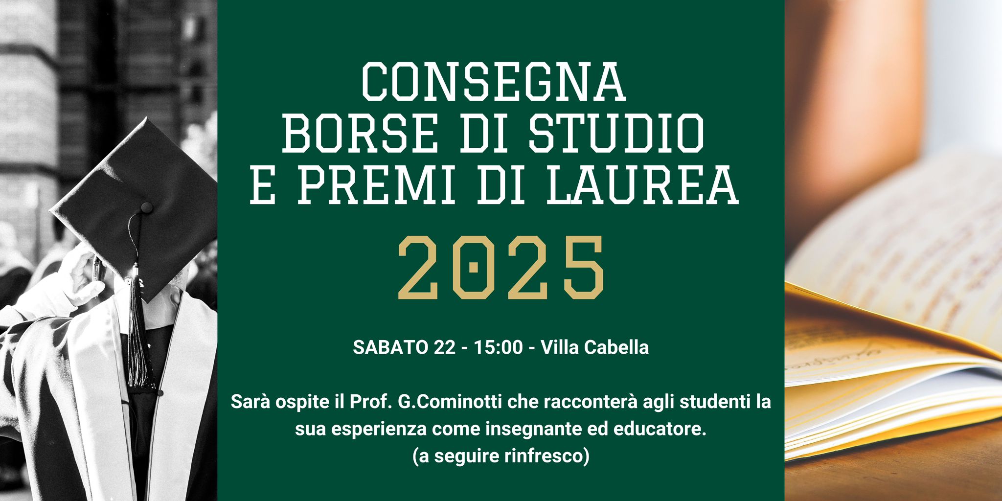 Sabato 22 novembre presso Villa Cabella, si terrà la cerimonia di consegna delle borse di studio e premi di laurea.